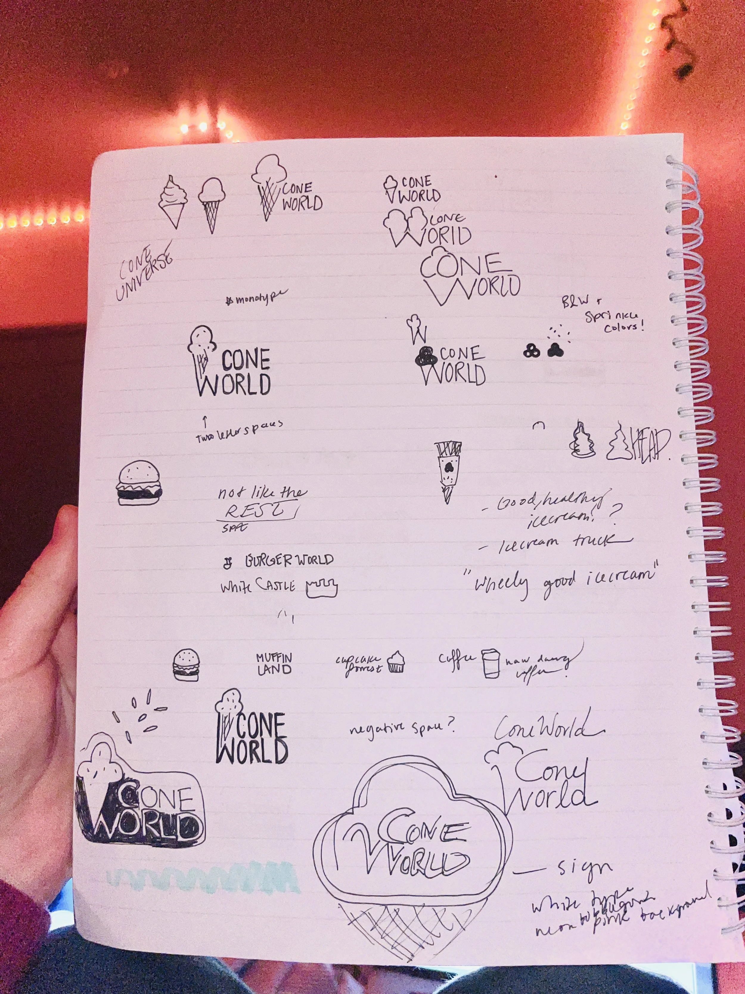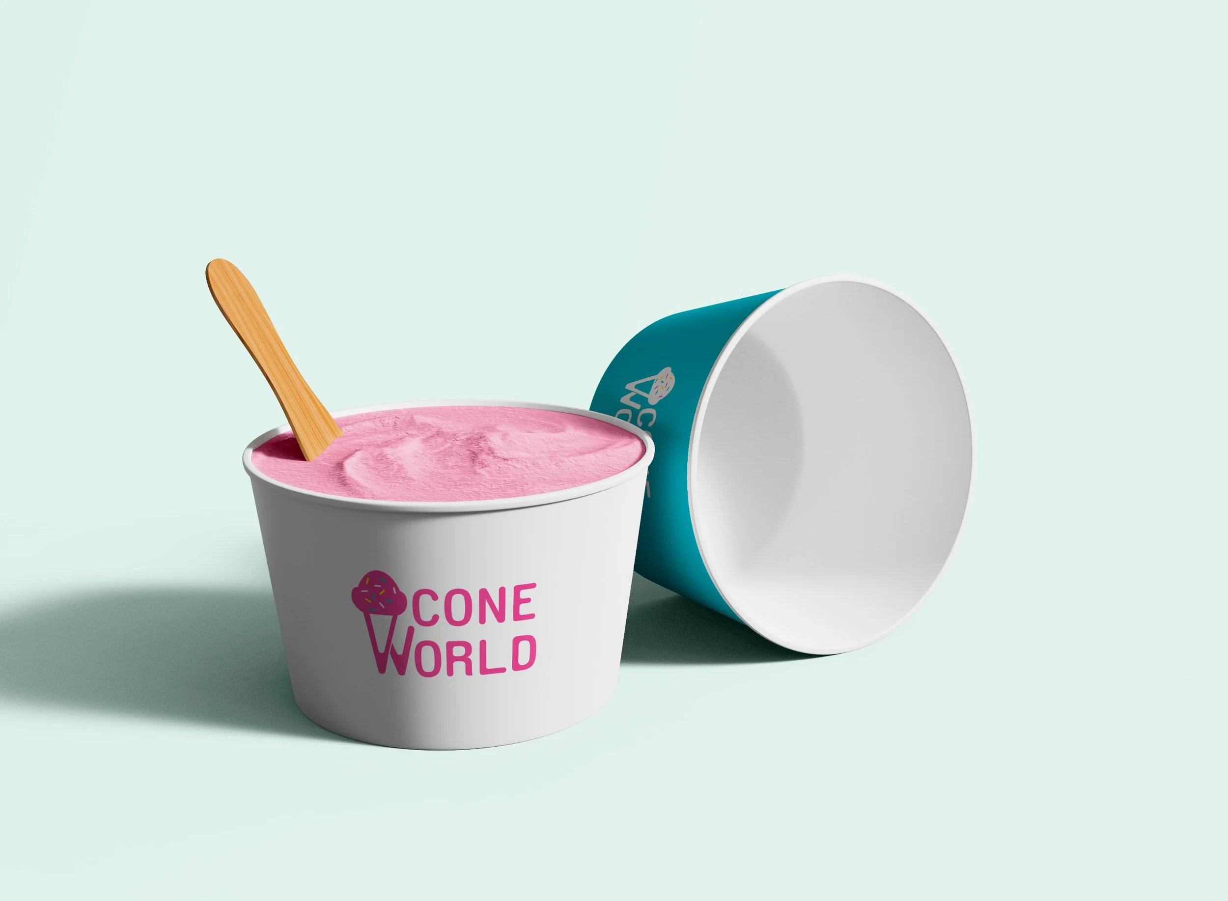 This branding is the result of a brief, self-prescribed exercise I did to create an identity system for an ice cream company. I named the company “Cone World” wanting to design a fun, playful logo with clever typography. After taking a course in design history, I was inspired by Paula Scher’s branding for Shake Shack, as well as by Herb Lubalin’s “typogram” logos. Ultimately, this project is an exploration of expressive typography.